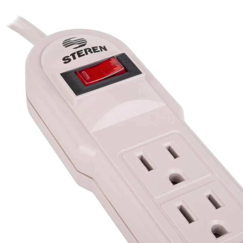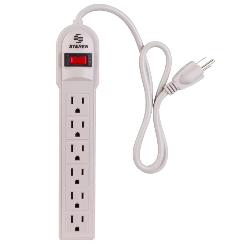 Steren 905-108. Longitud de cable: 0.7 m, Colocación compatible: Interior, Tipo de salida AC: Tipo B, Tipo C. Cantidad de salidas AC: 6 salidas AC. Voltaje de entrada AC: 125 V, Potencia máx. de entrada: 1875 W, Máxima corriente: 15 A. Ancho: 45 mm, Profundidad: 260 mm, Altura: 40 mm