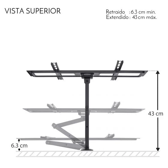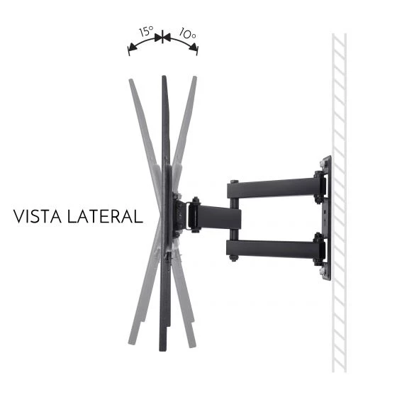 Steren STV-105. Tamaño mínimo de pantalla: 38.1 cm (15"), Tamaño máximo de pantalla: 177.8 cm (70"), Montaje VESA mínimo: 100 x 100 mm, Montaje VESA máximo: 600 x 400 mm. Distancia a la pared (min): 4.3 cm, Distancia a la pared (máx.): 6.3 cm. Color del producto: Negro