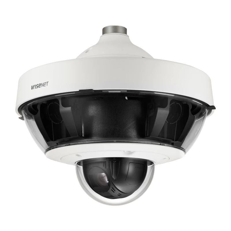 Hanwha Cámara IP Multisensor 8 - 20 MP (4 sensores de 2 o 5 MP) lentes intercambiables con PTZ 2 MP 32X / Hasta 5 tarjetas SD de 256 GB / WDR de hasta 150dB / IP66 / IK10