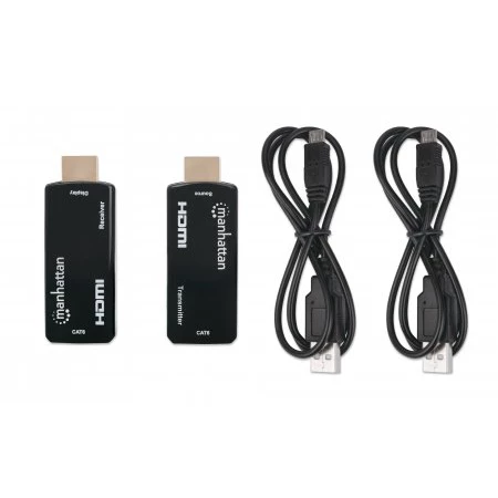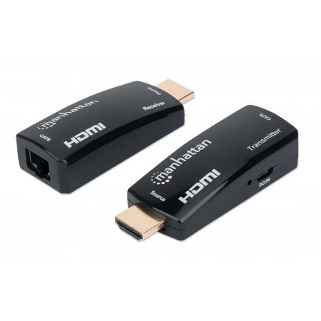 Manhattan Kit Extensor compacto de HDMI sobre Ethernet 60m. Tipo: Transmisor y receptor AV, Máxima resolución: 1920 x 1080 Pixeles, Tipos de cable soportados: Cat6. Tecnología de conectividad: Alámbrico, Tipo de conector USB: MicroUSB. Voltaje de operación: 5 V. Ancho: 62 mm, Profundidad: 27 mm, Altura: 17 mm