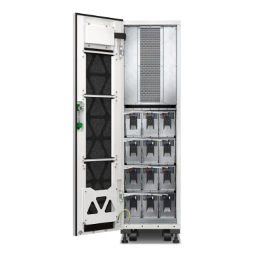 APC E3SUPS30KFBS. Topología UPS: Doble conversión (en línea), Capacidad de potencia de salida (VA): 30 kVA, Potencia de salida: 30000 W. Voltaje de la pila: 96 V. Color del producto: Blanco, Tipo de visualizador: LCD, Código IP (International Protection): IP20. Certificación: UL 1778 5th edition IEC 62040-2 FCC part 15 class B IEC 62040-3 cTUVus ISTA 2B. Ancho del paquete: 1200 mm, Largo del paquete: 800 mm, Alto del paquete: 1595 mm