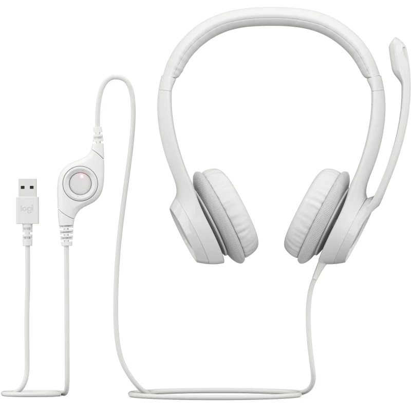Logitech H390. Tipo de producto: Auriculares. Tecnología de conectividad: Alámbrico. Uso recomendado: Oficina/Centro de llamadas. Frecuencia de auricular: 20 - 20000 Hz. Longitud de cable: 1.9 m. Peso: 197 g. Color del producto: Blanco