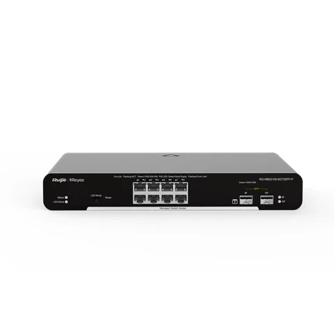 Ruijie Networks Switch Administrable PoE Capa 2, con 8 puertos Gigabit PoE 802.3af/at + 2 SFP para fibra 1Gb, gestión gratuita desde la nube, 125w