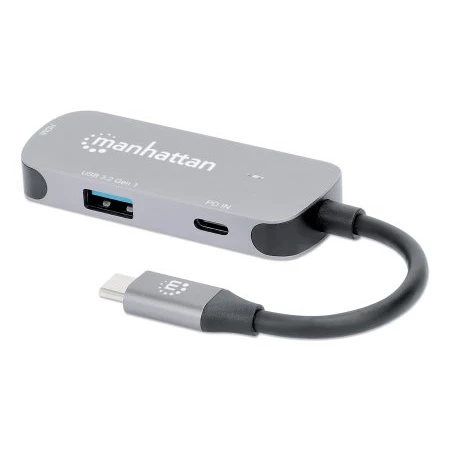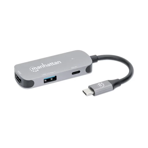 Manhattan Docking Station USB-C a HDMI, 3 en 1 con suministro de energía, Alámbrico, USB 3.2 Gen 1 (3.1 Gen 1) Type-C, 100 W, Aluminio, 3840 x 2160 Pixeles, 30 Hz