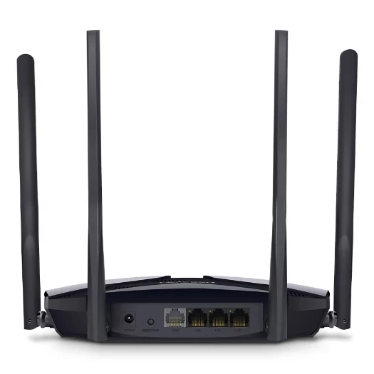 Mercusys MR80X. Tipo de conexión WAN: RJ-45. Banda Wi-Fi: Doble banda (2,4 GHz / 5 GHz), Máximo estándar Wi-Fi: Wi-Fi 6 (802.11ax), Tasa de transferencia de datos WLAN (máx.): 3000 Mbit/s. Tipo de interfaz Ethernet LAN: Gigabit Ethernet, Ethernet LAN, velocidad de transferencia de datos: 10,100,1000 Mbit/s, Tecnología de cableado: 10/100/1000Base-T(X). Algoritmos de seguridad: WEP, WPA, WPA2, WPA3, Seguridad con cortafuegos: SPI Firewall, IP and MAC Address Binding, Funcionalidad NAT: Port Forwarding, Port Triggering, UPnP, DMZ. Tipo de producto: Router de mesa, Color del producto: Negro, Indicadores LED: LAN, WAN