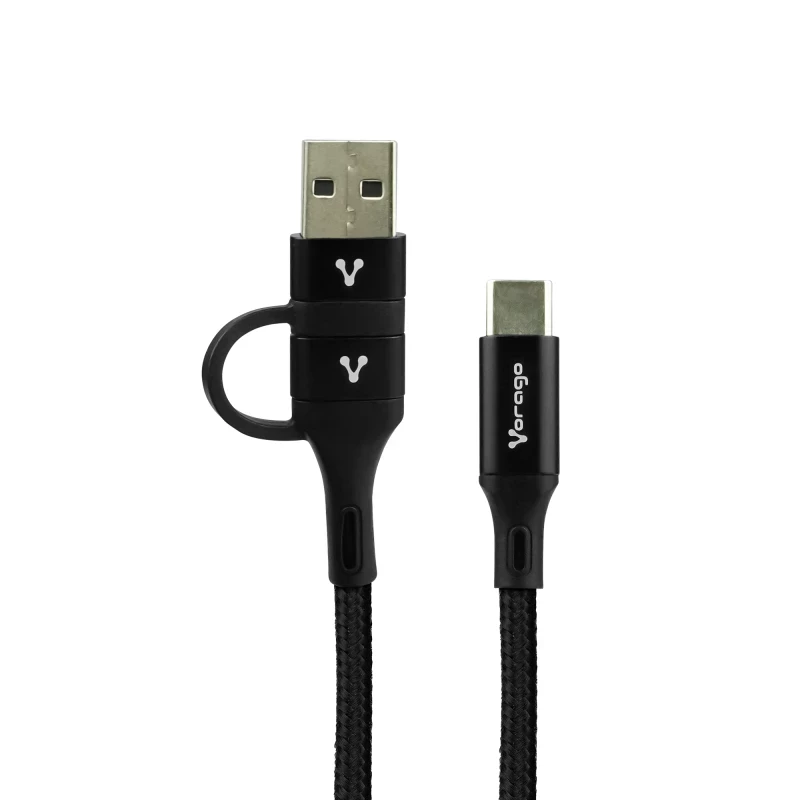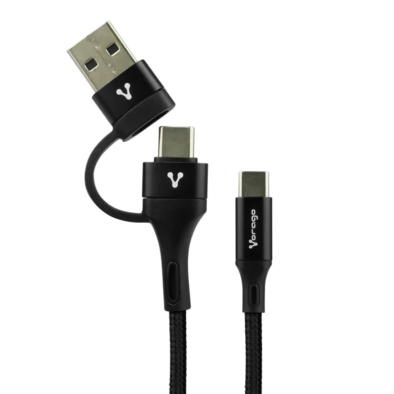Vorago CAB-126. Longitud de cable: 1 m. Conector 1: USB A/USB C, Conector 2: USB C, Color del producto: Negro