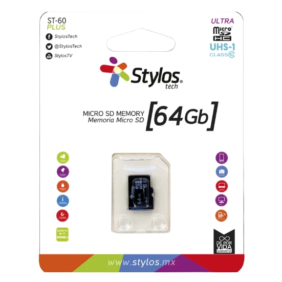 Memoria SD Stylos STMSDA3B, 64 GB, MicroSD, con adaptador uhs1 Negro