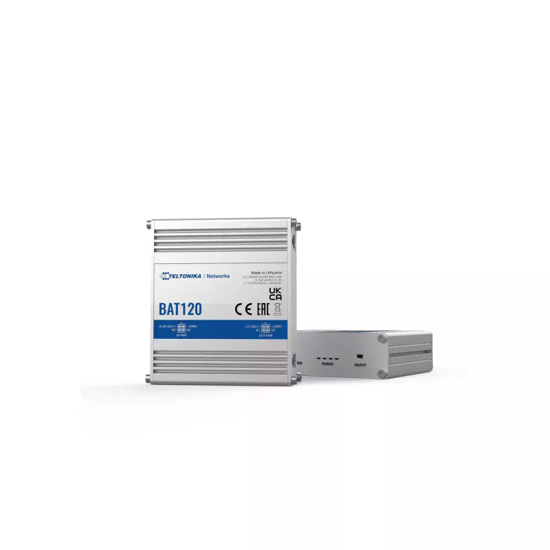 Teltonika BAT120. Topología UPS: Línea interactiva, Potencia de salida: 22 W, Forma de onda: Sawtooth. Tecnología de batería: Ión de litio, Capacidad de la batería: 2.3 Ah, Voltaje de la pila: 3.7 V. Factor de forma: Compacto, Color del producto: Acero inoxidable, Material de la cubierta: Aluminio. Ancho: 100 mm, Profundidad: 85 mm, Altura: 30 mm