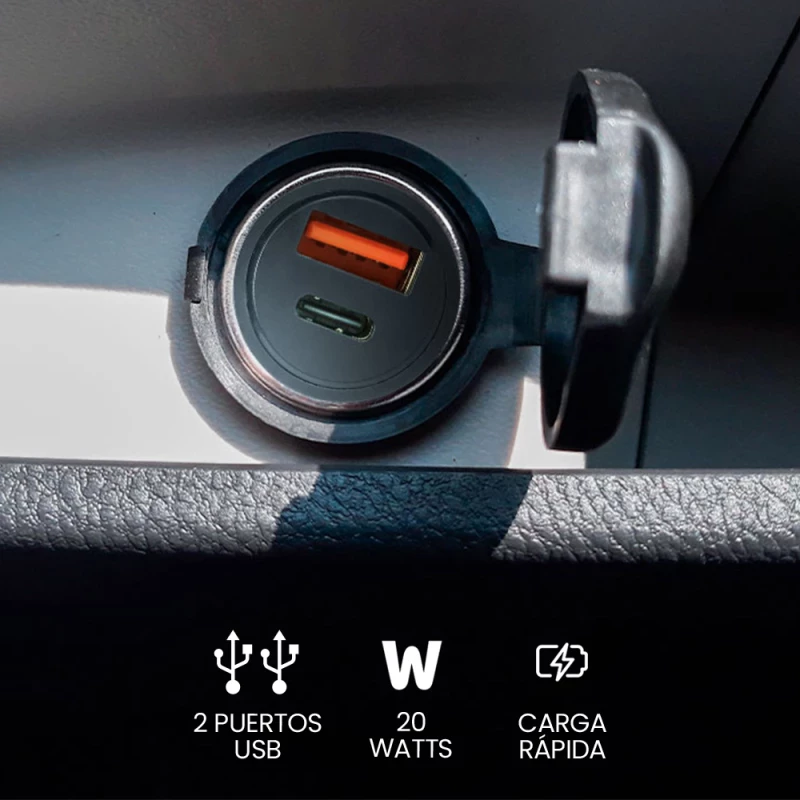 AU-305-BK Vorago CARGADOR PARA AUTO AU-305-BK TIPO C PD 20W Y USB A QUICK CHARGE 3.0 NEGRO -, Auto, USB, 12 V, Negro