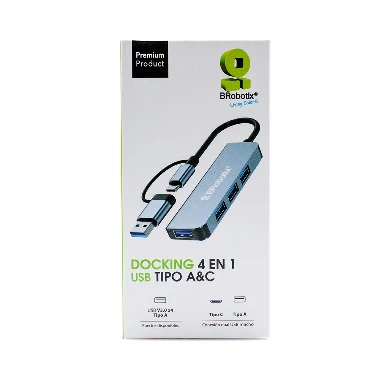BRobotix 6005460. Tecnología de conectividad: Alámbrico, Interfaz de host: USB 3.2 Gen 1 (3.1 Gen 1) Type-A + Type-C. Color del producto: Negro, Gris, Interfaces de concentradores: USB 3.2 Gen 1 (3.1 Gen 1) Type-A, USB 3.2 Gen 1 (3.1 Gen 1) Type-C. Ancho: 90 mm, Profundidad: 28 mm, Altura: 10 mm. Cantidad por paquete: 1 pieza(s), Ancho del paquete: 61 mm, Largo del paquete: 11 mm. Longitud de cable: 0.17 m