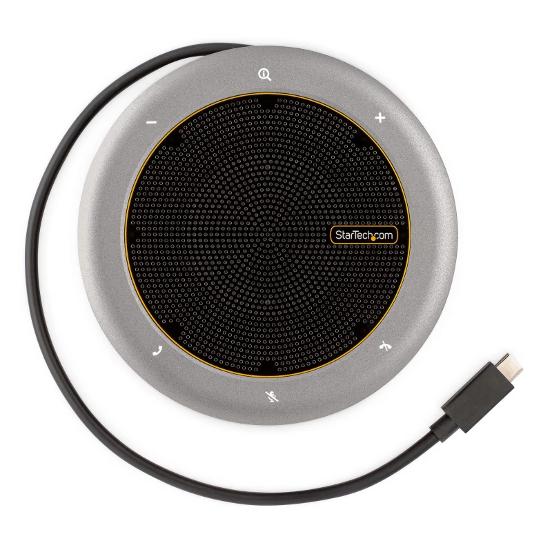 Este miniacoplamiento USB tipo C para altavoces de conferencia cuenta con un altavoz, salida de vídeo HDMI/VGA, USB-C PD pass-through/data, un concentrador USB-A x2, un cable anfitrión USB-C integrado y botones tap/touch con indicadores LED. Simplifica la configuración de una estación de trabajo, convirtiendo cualquier escritorio en un espacio de teleconferencia. La base dispone de salida de vídeo única HDMI o VGA. Dispone de 2 puertos USB-A y un puerto USB-C con la opción de paso de Power Delivery (PD).. La base Conference Speaker Dock se conecta al dispositivo anfitrión mediante un cable anfitrión USB-C envolvente integrado de 56cm. Conecte este cable host a un puerto USB-C o Thunderbolt 3/4™.