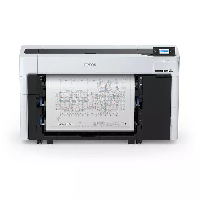 Epson SureColor T5770DR. Tecnología de impresión: Inyección de tinta, Resolución máxima: 2400 x 1200 DPI, Idiomas de la descripción de la página: ESC P, HP-GL/2, HP-RTL, PDF 1.7, PostScript 3. Tamaño máximo de impresión: A0 (841 x 1189 mm), Tipos de medios de la bandeja de papel: Rodar. Ethernet LAN, velocidad de transferencia de datos: 100,1000 Mbit/s. Color del producto: Negro, Blanco, Diagonal de la pantalla: 10.9 cm (4.3"), Tipo de control: Tocar. Consumo energético: 80 W, Consumo de energía (apagado): 0.3 W, Consumo energético (en suspensión): 2 W