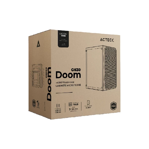 Acteck Doom GI630. Factor de forma: Micro Tower, Tipo: PC, Color del producto: Negro. Fuente de alimentación: 500 W. Tamaños de disco duro soportados: 2.5,3.5". Ancho: 200 mm, Profundidad: 325 mm, Altura: 353 mm