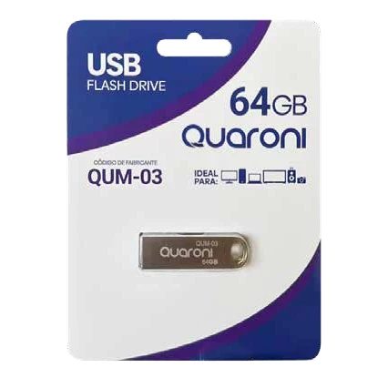 Quaroni QUM-03. Capacidad: 64 GB, Interfaz del dispositivo: USB tipo A, Versión USB: 2.0. Factor de forma: Sin tapa. Peso: 5.7 g. Color del producto: Acero inoxidable