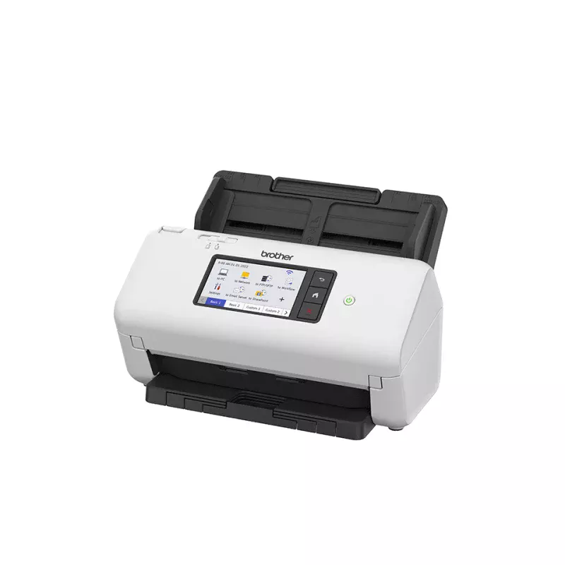 Brother ADS-4700W. Tamaño máximo de escaneado: 355.6 x 215.9 mm, Resolución óptica de escáner: 600 x 600 DPI, Resolución de escaneado mejorada: 1200 x 1200 DPI. Tipo de escaneado: ADF + Escáner de alimentación de hojas, Color del producto: Negro, Blanco, Pantalla: LCD. Tipo de sensor: Dual CIS, Ciclo de trabajo diario (máx.): 6000 páginas, Formatos de archivo para escaneo: JPEG, PDF, TIFF. Capacidad del alimentador automático de documentos: 80 hojas. Tamaño máximo de papel ISO A-series: A4, Tipos de media soportados de escaneo: Tarjeta de presentación, Papel normal, Tarjeta de plástico, Papel reciclado, Papel grueso, Papel..., Grosor del soporte (min): 0.08 mm
