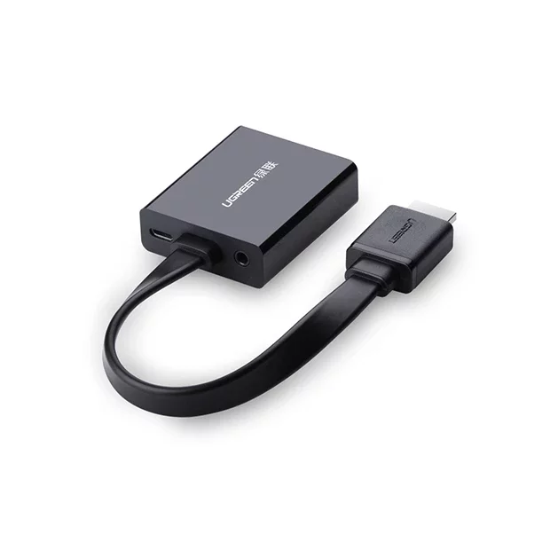 UGREEN Adaptador HDMI a VGA / Resolución 1080P / Audio 3.5mm / Con Puerto Micro USB para Alimentación / Plug & Play / No Requiere Controlador / ABS / Flexible y Duradero