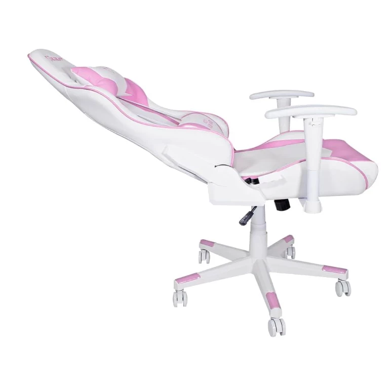 silla gamer rosa con blanco