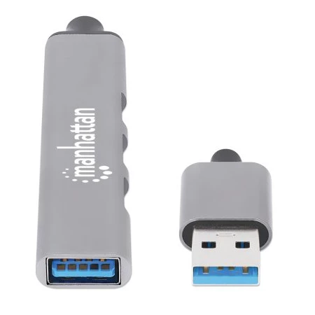 Manhattan 168427. Interfaz de host: USB 3.2 Gen 1 (3.1 Gen 1) Type-A, Interfaces de concentradores: USB 2.0. Velocidad de transferencia de datos: 5000 Mbit/s, Color del producto: Gris, Material de la cubierta: Aluminio. Voltaje de salida: 5 V, Corriente de salida: 0.9 A. Sistemas operativos Windows soportados: Windows 10, Windows 11, Windows 7, Windows 8.1, Otros sistemas operativos soportados: ChromeOS. Ancho: 17 mm, Profundidad: 101 mm, Altura: 7 mm