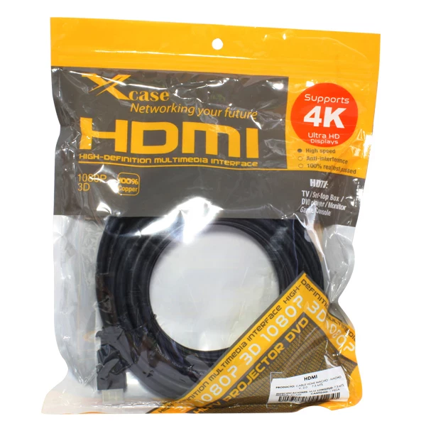 X-Case HDMICAB20-18. Longitud de cable: 1.8 m, Conector 1: HDMI Tipo A (Estándar), Género del conector 1: Macho, Conector 2: HDMI Tipo A (Estándar), Género del conector 2: Macho, Versión HDMI: 2.0, Máxima resolución: 3840 x 2160 Pixeles, Color del producto: Negro, Oro