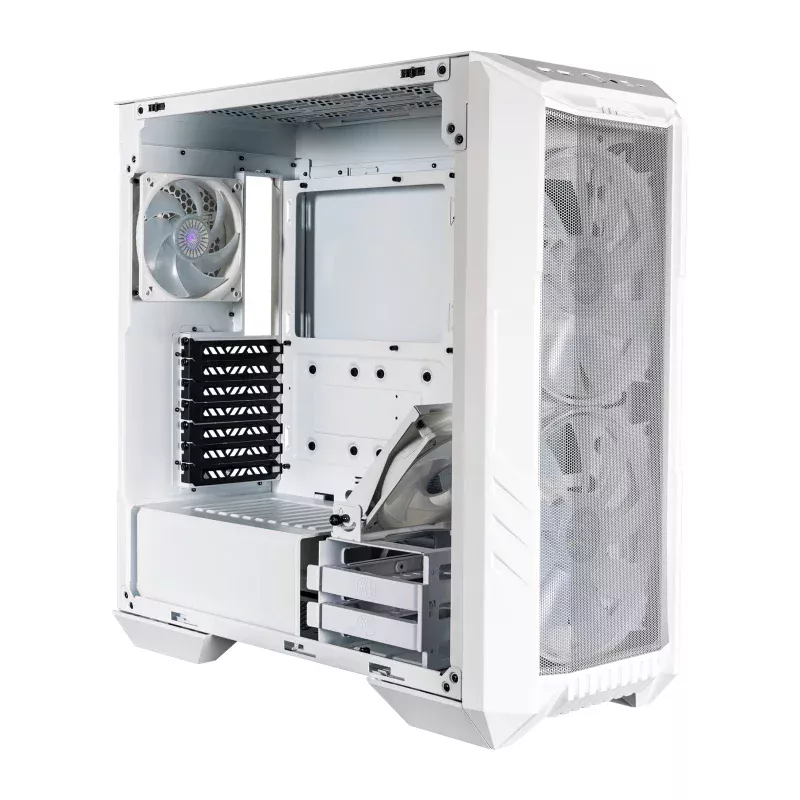 Gabinete Cooler Master HAF 500, Midi Tower, PC, Blanco, ATX, Micro ATX, SSI CEB, ITX, EATX, Red, Vidrio templado, Plástico, Acero, Multi
