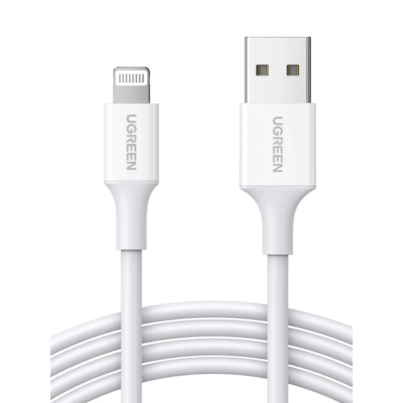 UGREEN Cable USB-A a Lightning | 1 Metro | Certificado MFi | Carga Rápida 5V/2.4 A| 480 Mbps | PD | Conector C89 | Adecuado para iPhone, iPad y iPod | Protección Integrada | Caja de ABS | Cubierta de TPE | Color Blanco.