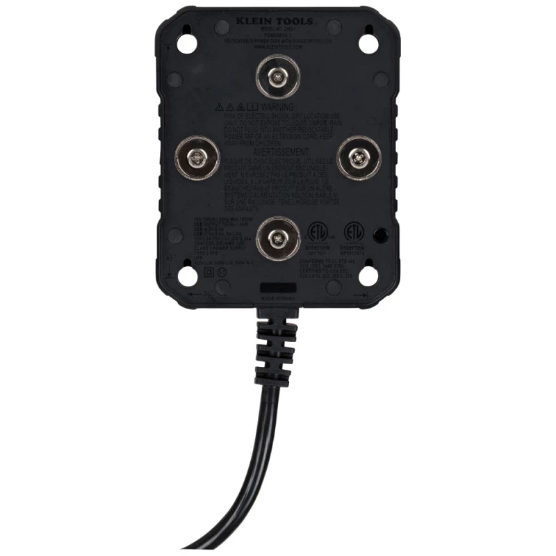 KLEIN TOOLS Multicontacto Powerbox 1, con 4 Salidas 120 Vca, 2 USB-A / 1 USB-C, Luces LED Integradas y Soporte Magnético