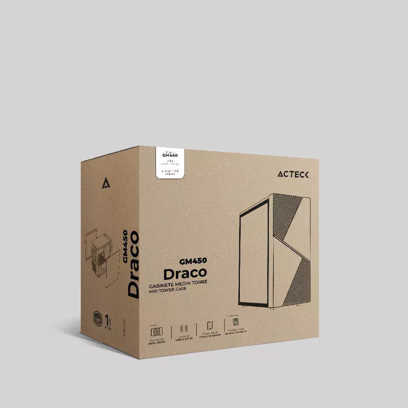 Acteck Draco GM450. Factor de forma: Midi Tower, Tipo: PC, Color del producto: Negro. Fuente de alimentación: 500 W, Factores de forma de la fuente de alimentación compatibles: ATX. Tamaños de disco duro soportados: 2.5,3.5". Ancho: 180 mm, Profundidad: 300 mm, Altura: 410 mm