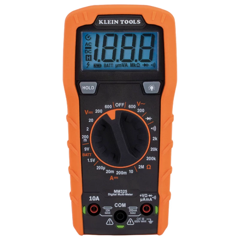 KLEIN TOOLS Multímetro Digital con Selección Manual Rango 600V CAT III con Protección de Alerta LED del Cable de Prueba