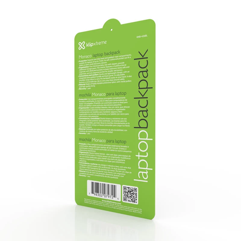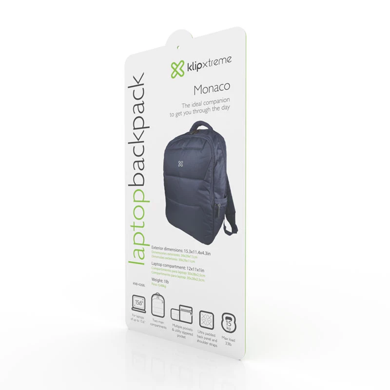 Klip Xtreme KNB-426BL. Tipo mochila para la espalda: Mochila casual, Color principal del producto: Azul, Estilo: Ciudad. Ancho: 290 mm, Profundidad: 110 mm, Altura: 390 mm. Materiales: Nylon