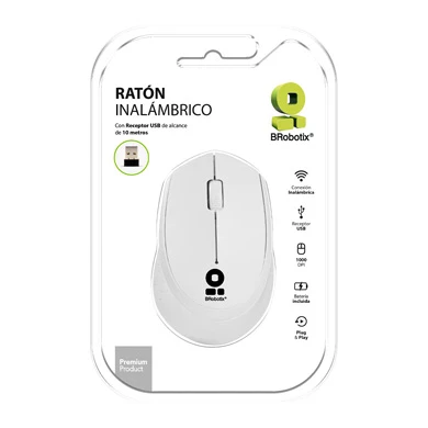 Mouse BRobotix 6000809, Ambidiestro, Óptico, RF inalámbrico, 1000 DPI, Blanco
