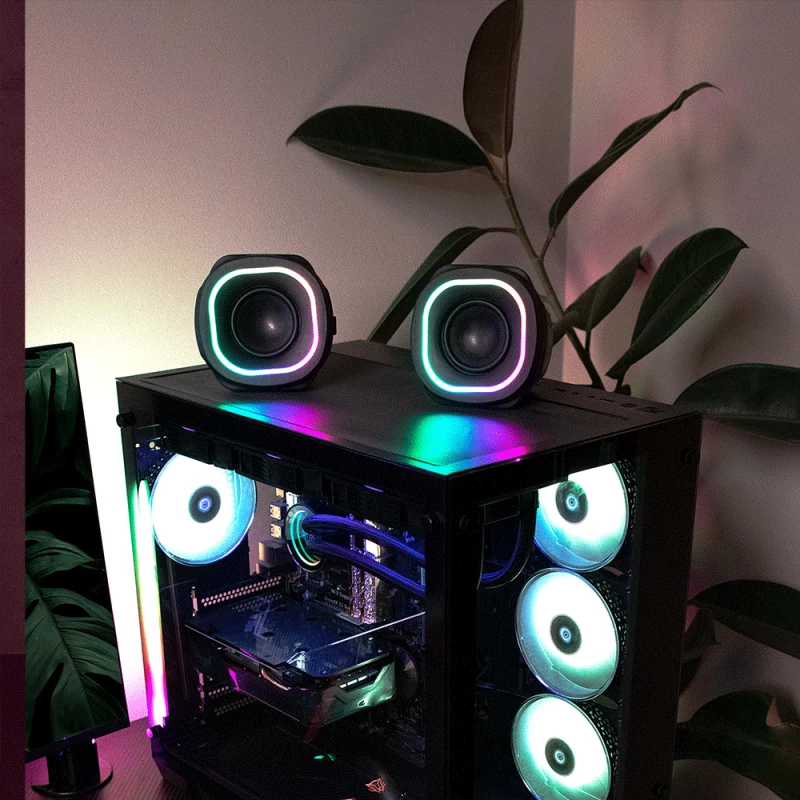 Balam Rush Glimm Quad BG555. Uso recomendado: PC. Tipo de altavoces: De 1 vía, Canales de salida de audio: 2.0 canales, Número de controladores: 1. Tecnología de conectividad: Alámbrico. Potencia estimada RMS: 10 W, Rango de frecuencia: 45 - 16000 Hz, Impedancia: 4 Ohmio, Sensibilidad: 30 Db. Color del producto: Negro