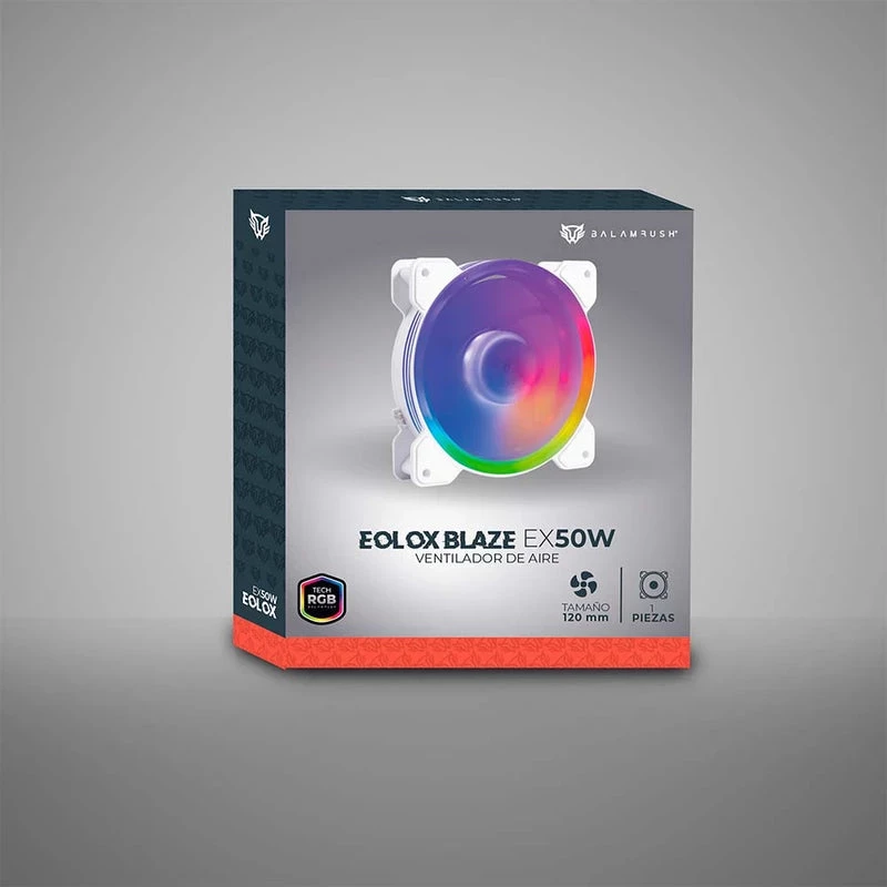 Balam Rush Eolox Blaze EX50W. Tipo: Enfriador de aire, Diámetro de ventilador: 12 cm, Velocidad de rotación (máx.): 1500 RPM. Voltaje: 5/12 V. Color del producto: Blanco