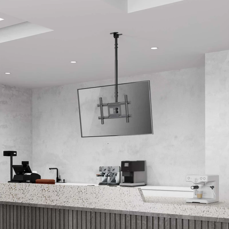Manhattan Soporte de techo para TV con movimiento y ajuste de altura. Capacidad máxima de peso: 50 kg, Tamaño mínimo de pantalla: 94 cm (37"), Tamaño máximo de pantalla: 2.03 m (80"), Montaje VESA mínimo: 200 x 200 mm, Montaje VESA máximo: 600 x 400 mm. Rango de ajustes de altura: 707 - 1577 mm, Ángulo de inclinación: -25 - 5°, Ángulo de giro (alcance): -30 - 30°. Color del producto: Negro