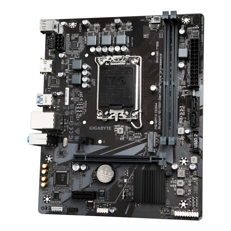 GIGABYTE H610M K DDR4. Fabricante de procesador: Intel, Socket de procesador: LGA 1700, Procesador compatible: Intel® Celeron®, Intel® Core™ i3, Intel® Core™ i7, Intel® Core™ i9, Intel® Pentium® Gold. tipos de memoria compatibles: DDR4-SDRAM, Memoria interna máxima: 64 GB, Tipo de ranuras de memoria: DIMM. Interfaces de disco de almacenamiento soportados: M.2, SATA III, Tipos de unidades de almacenamiento admitidas: HDD & SSD. Máxima resolución: 4096 x 2160 Pixeles. Tipo de conector USB: USB tipo A