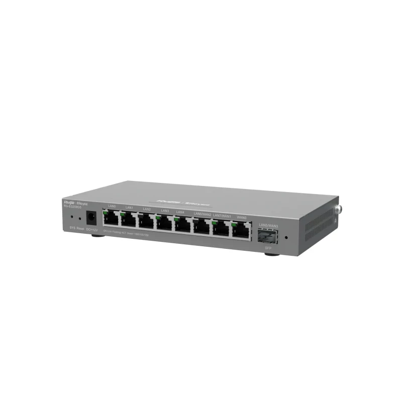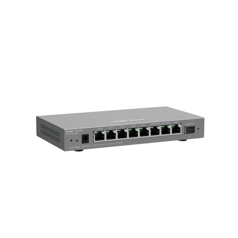 Ruijie Networks RG-EG209GS. Tipo de interfaz ethernet: Gigabit Ethernet, Tecnología de cableado: 10/100/1000Base-T(X), Ethernet LAN, velocidad de transferencia de datos: 10,100,1000 Mbit/s. Memoria Flash: 32 MB, Memoria interna: 256 MB. Color del producto: Gris. Consumo energético: 18 W, Tipo de alimentación: Corriente alterna, Voltaje de entrada AC: 100 - 240 V. Ancho: 202 mm, Profundidad: 108 mm, Altura: 28 mm