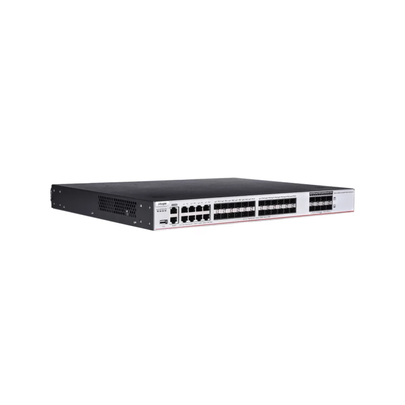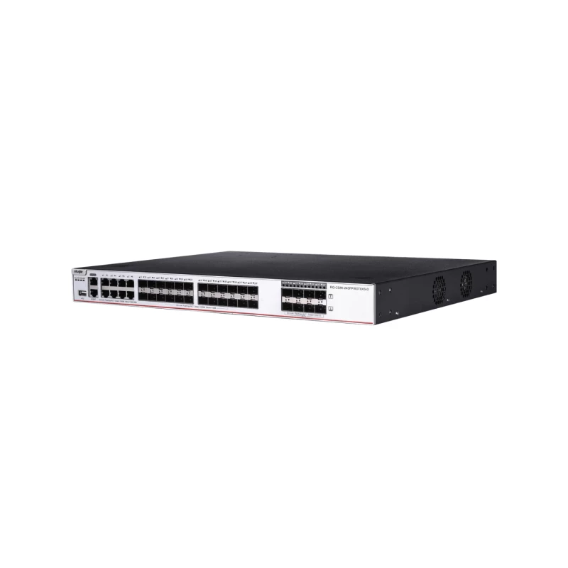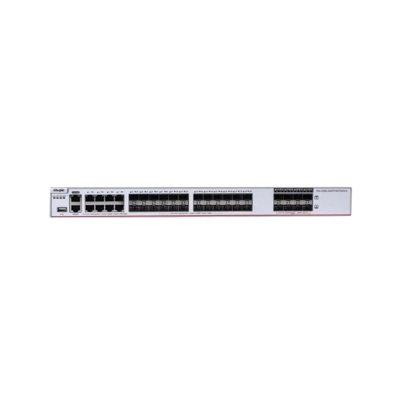 Ruijie Networks RG-CS85-24SFP/8GT8XS-D. Tipo de interruptor: Gestionado, Capa del interruptor: L3. Puertos tipo básico de conmutación RJ-45 Ethernet: Gigabit Ethernet (10/100/1000), Cantidad de puertos básicos de conmutación RJ-45 Ethernet: 24. Tabla de direcciones MAC: 64000 entradas, Capacidad de conmutación: 688 Gbit/s. Estándares de red: IEEE 802.3ah, IEEE 802.1p, IEEE 802.3ad. Montaje en rack, Factor de forma: 1U