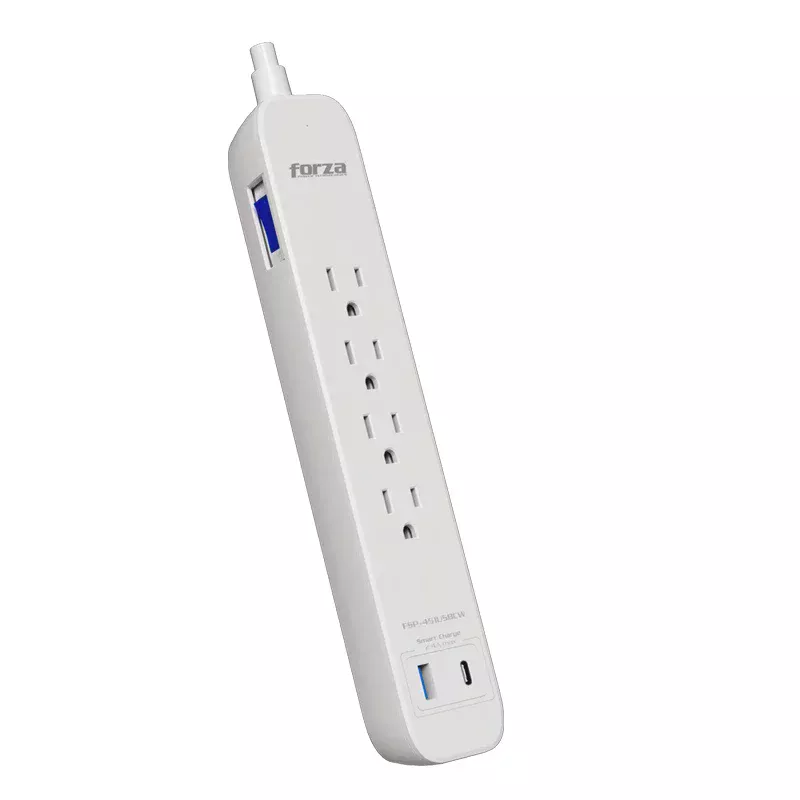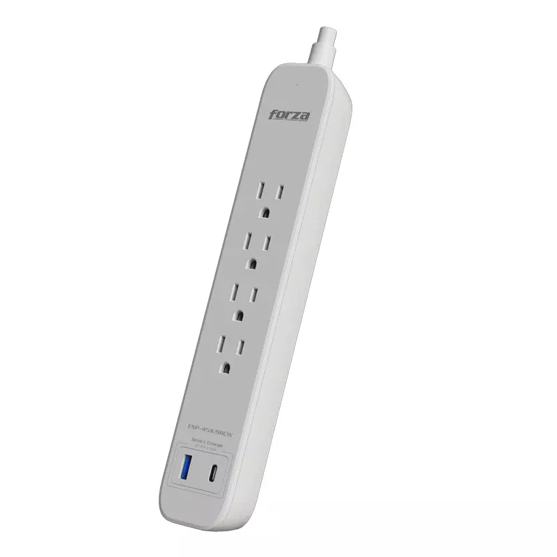 Forza FSP-451USBCW. Índice de aumento de energía: 500 J, Cantidad de salidas AC: 4 salidas AC, Tipo de salida AC: NEMA 5-15R. Conector: NEMA 5–15P. Color del producto: Gris, Blanco