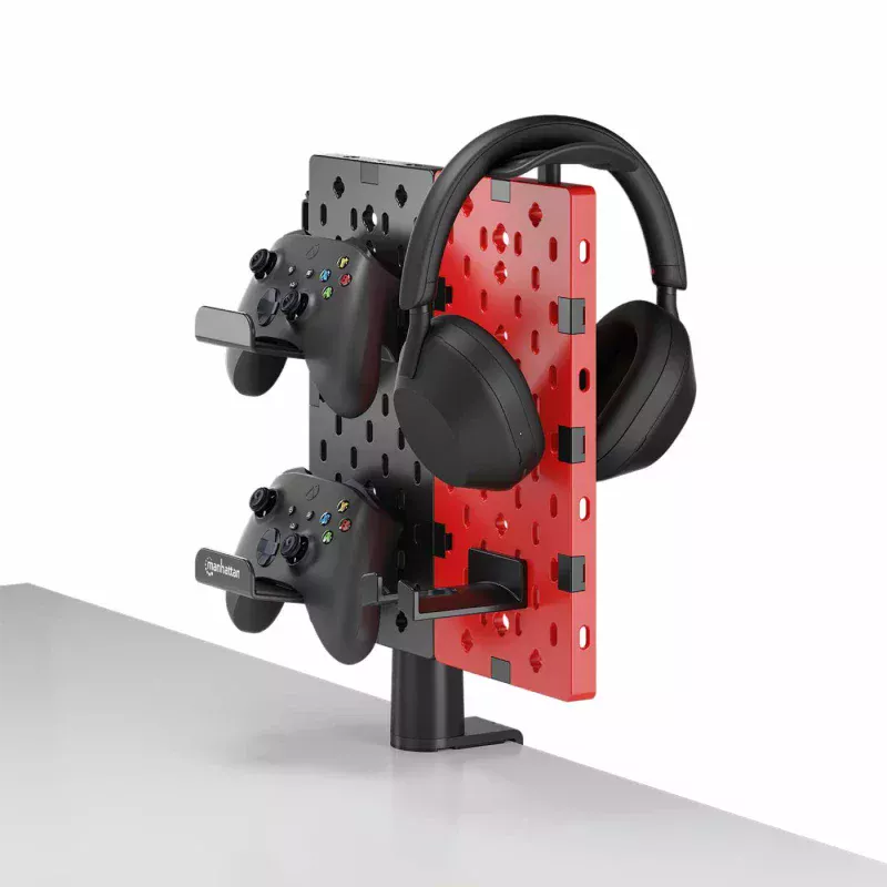 Manhattan Soporte de escritorio con tablero organizador perforado y porta accesorios. Tipo de dispositivo móvil: Control de juegos, Auriculares, Tipo: Soporte pasivo, Uso adecuado: Escritorio, Color del producto: Negro, Rojo
