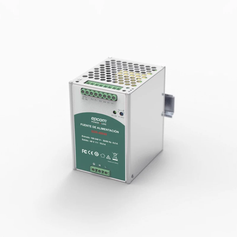 Epcom SDR-48048. Tipo de fuente de alimentación: Interior / exterior, Voltaje de entrada: 100 - 240 V, Potencia de salida: 480 W. Color del producto: Gris. Certificados de cumplimiento: RoHS. Ancho: 88.2 mm, Profundidad: 120.4 mm, Altura: 126.6 mm. Cantidad por paquete: 8 pieza(s)