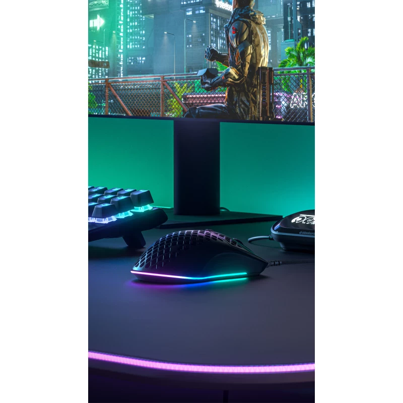 Steelseries Aerox 3. Factor de forma: Diestro. Tecnología de detección de movimientos: Óptico, Interfaz del dispositivo: USB Tipo C, Resolución de movimiento: 8500 DPI, Tiempo de respuesta: 1 ms, Tipo de botones: Botones presionados, Cantidad de botones: 6, Tipo de desplazamiento: Rueda, Aceleración (máx.): 35 G. Iluminación de color: Multi. Fuente de energía: Cable. Color del producto: Negro