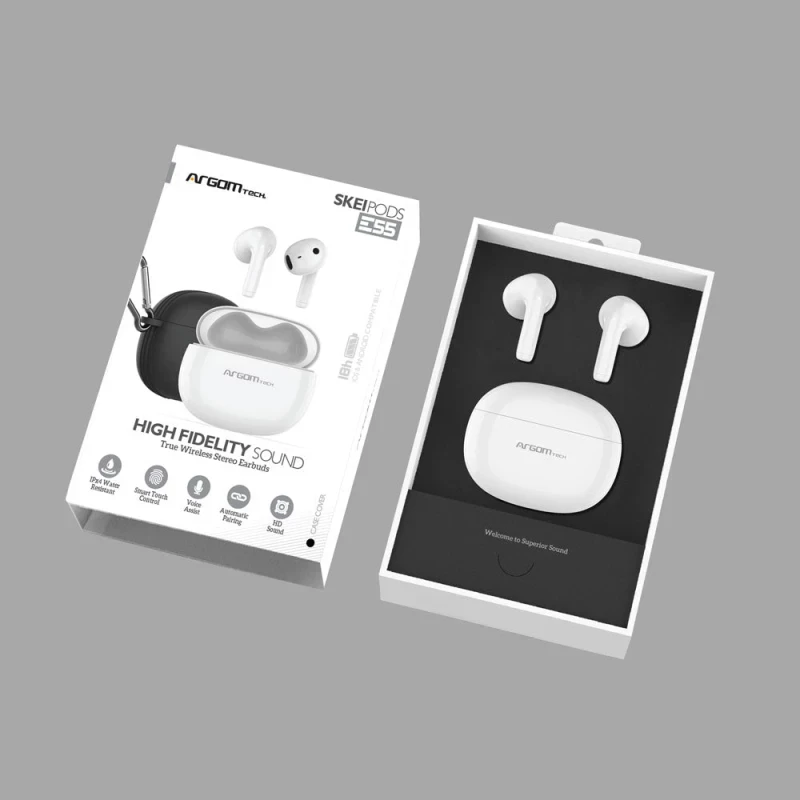 ArgomTech ARG-HS-5055PK. Tipo de producto: Auriculares. Tecnología de conectividad: True Wireless Stereo (TWS), Bluetooth. Uso recomendado: Llamadas/Música. Alcance inalámbrico: 10 m. Color del producto: Blanco