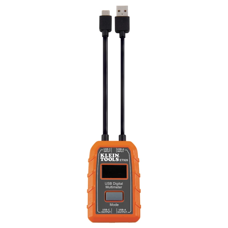 Klein Tools ET920. Tipo de producto: Multímetro digital, Colocación compatible: Multímetro de mano, Rango de voltaje DC: 3 - 20 V. Pantalla: LCD. Fuente de energía: USB. Ancho: 50 mm, Profundidad: 15 mm, Altura: 75 mm