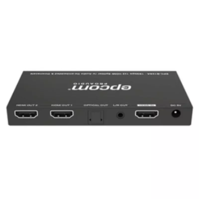 Epcom EPC-B12SA. Tipo de puerto de vídeo: HDMI. Materiales: Metal, Color del producto: Negro, Ancho de banda: 18 Gbit/s. Voltaje de entrada AC: 100 - 240 V, Frecuencia de adaptador AC: 50/60 Hz, Consumo de energía (máx.): 2.8 W. Ancho: 120 mm, Profundidad: 62.5 mm, Altura: 14 mm