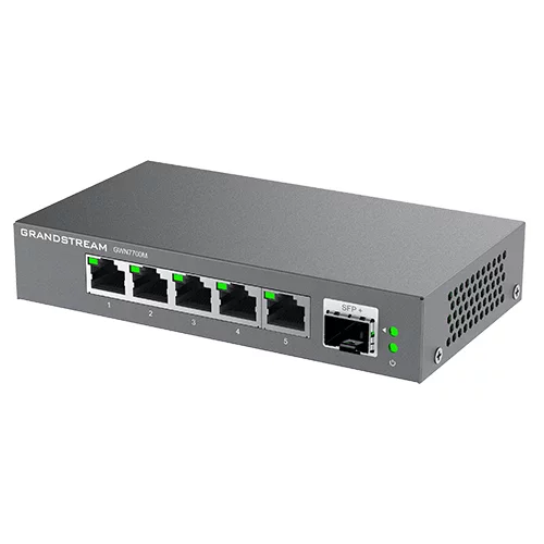 Grandstream Networks GWN7700M. Tipo de interruptor: No administrado. Puertos tipo básico de conmutación RJ-45 Ethernet: 2.5G Ethernet (100/1000/2500), Cantidad de puertos básicos de conmutación RJ-45 Ethernet: 5, Número de módulos SFP+ instalados: 1. Capacidad de conmutación: 45 Gbit/s. Estándares de red: IEEE 802.1p, IEEE 802.1x, IEEE 802.3ab, IEEE 802.3ae, IEEE 802.3aq, IEEE 802.3bz, IEEE 802.3i,.... Voltaje de entrada DC: 12 V