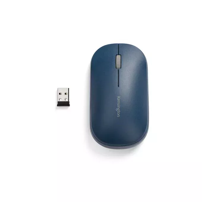 Kensington Mouse con conexión inalámbrica dual SureTrack™ (azul). Factor de forma: Ambidiestro. Interfaz del dispositivo: RF inalámbrico + bluetooth, Resolución de movimiento: 2400 DPI, Tipo de botones: Botones presionados, Cantidad de botones: 3, Tipo de desplazamiento: Rueda. Fuente de energía: Baterías. Color del producto: Azul