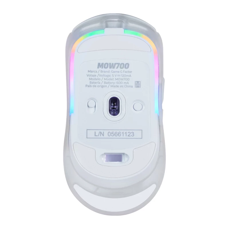 Game Factor MOW700-WH. Factor de forma: Ambidiestro. Interfaz del dispositivo: RF Wireless + Bluetooth + USB Type-A, Resolución de movimiento: 26000 DPI, Tipo de desplazamiento: Rueda. Fuente de energía: Cable. Color del producto: Blanco
