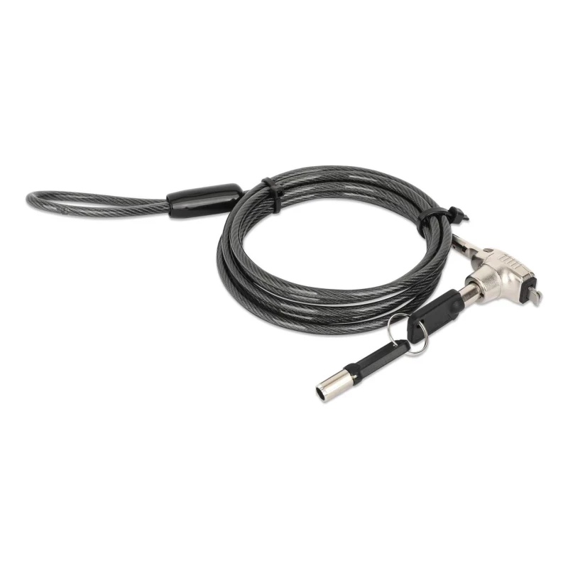 Manhattan Candado de seguridad Nano para laptop, con llave Candado antirrobo para laptop, dos llaves incluidas, cable de acero de 1.5 m (5 pies), cubierta de PVC negra traslúcida, plateado