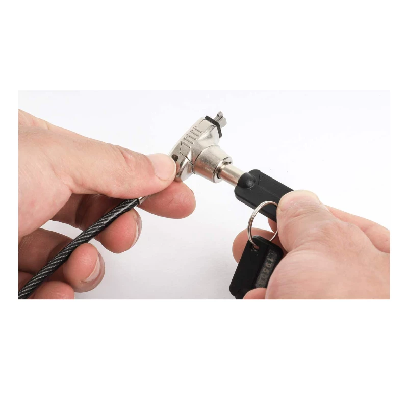 Este candado se engancha directamente en la ranura de bloqueo de tamaño nanométrico más común del sector, la ranura de seguridad Nano de Kensington, que se utiliza en muchas laptops ultradelgadas y en algunas tabletas. Su cabezal de bloqueo es muy delgado por lo que no levantará tu dispositivo de la superficie, lo que le permite permanecer en su lugar de forma estable