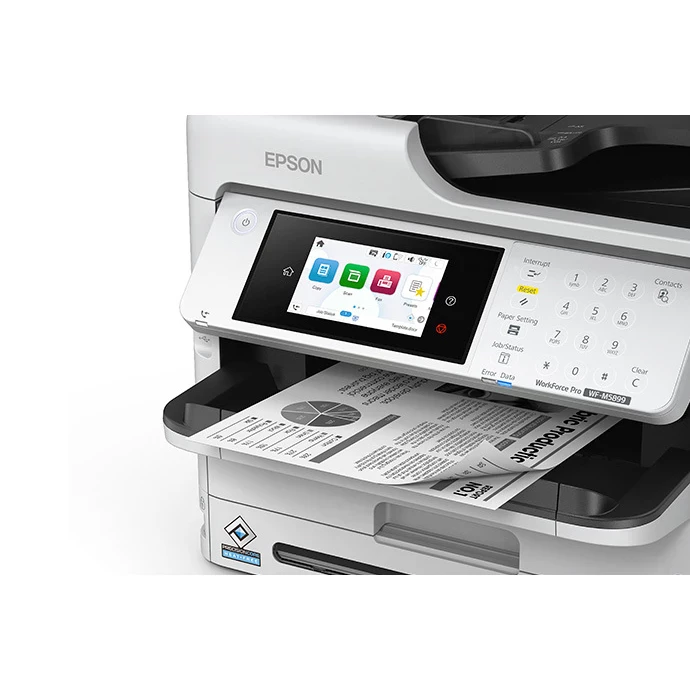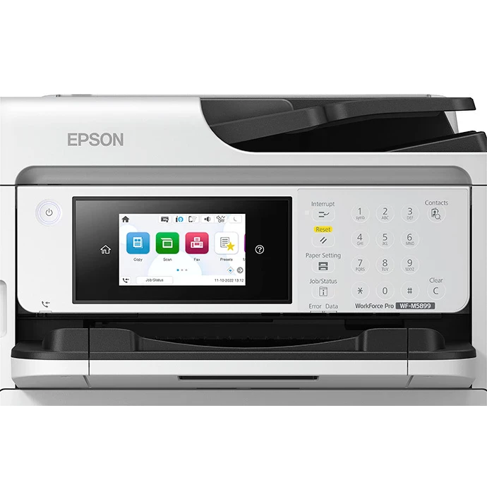 Epson WorkForce Pro WF-M5899. Tecnología de impresión: Inyección de tinta, Impresión: Impresión en blanco y negro, Resolución máxima: 1200 x 2400 DPI. Copiando: Copias en blanco y negro. Escaneando: Escaneo a color, Resolución óptica de escáner: 1200 x 2400 DPI. Enviando por fax: Envío y recepción de faxes en blanco y negro. Funciones de doble cara: Copiar, Imprimir, Escanear. Tamaño máximo de papel ISO A-series: A4. Wifi. Impresión directa. Color del producto: Negro, Blanco