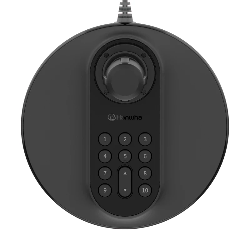 Hanwha SPC-2001. Tipo: Palanca de mando, Color del producto: Negro, Compatibilidad de marca: Hanwha. Voltaje de entrada: 5 V, Tipo de alimentación: USB. Ancho: 182 mm, Profundidad: 182 mm, Altura: 106 mm. Cantidad por paquete: 1 pieza(s)
